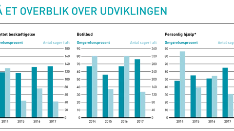 Når Ankestyrelsen omgør en sag, betyder det, at den enten bliver hjemvist til kommunen, som skal vurdere sagen igen, eller at den bliver ændret. Ser man på andelen af omgørelser på områderne ‘socialpædagogisk ledsagelse’, ‘botilbud’ og ‘beskyttet beskæftigelse’ fra 2014 til 2017 er der sket et stigning fra 54 pct. i 2014, 55 pct. i 2015, 58 pct. i 2016, mens tallet for første og andet kvartal af 2017 er på 68 pct.