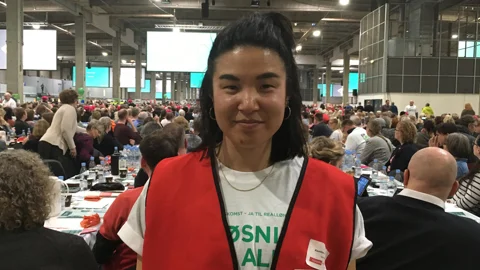 Jeg fik gåsehud, da jeg kom. Man bliver tændt af den energi, der er her. Og jeg håber på, at jeg kan bringe den gejst, det engagement og den solidaritet, der er her, med hjem til kollegerne på arbejdspladserne.