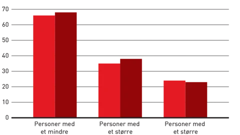 Mens udviklingen for borgere med et mindre eller et større fysisk handicap viser svage tegn på fremgang, er det det siden gået en smule i den gale retning for personer med større psykisk handicap, viser tallene fra Institut for Menneskerettigheder (se figur).