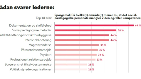 Det er især dokumentation og skriftlighed, som det socialpædagogiske personale mangler kompetencer indenfor. Sådan svarer 64 pct. af de adspurgte ledere i en undersøgelse foretaget af