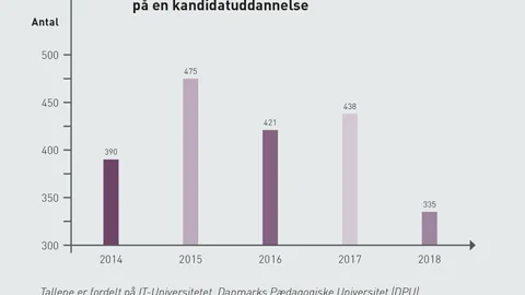 Der er langt mellem de pædagoger, som vender tilbage til livet med tykke bøger og SU og udbygger fagligheden med en kandidatuddannelse på en af landets universiteter. Mens der i 2018 blev optaget 4.957 nye studerende rundt om på landets pædagoguddannelser, var der til sammenligning kun 330 færdiguddannede pædagoger, der begyndte på en kandidatuddannelse.