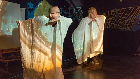 I det kunstneriske værksted KARAVANA ved Aarhus får mennesker med nedsat fysisk og psykisk funktionsevne mulighed for at sætte alle kreative kræfter i spil. Med socialpædagoger ved roret opstår der magi både på scenen og i det farvestrålende atelier