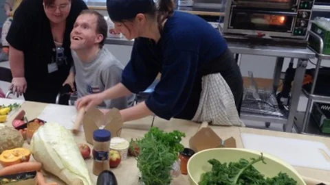 Nogle af de ting, som der har været fokuseret på, var hvordan personalet skulle agere, så det var kunstneren og beboerne som havde et projekt sammen. Altså hvordan man som pædagog skulle agere i et rum, hvor man både skulle være synlig og usynlig. Hvordan personalet kunne lykkedes med at være til stede i lokalet og udvise en ro og samtidig kunne træde til og være beboernes arme, hvis det var nødvendigt. Men også være den i lokalet, som var med til at hjælpe beboerne i tilpas arrousal i en situation, hvor de var langt fra vante rutiner, eller var sammen med flere andre, som de ikke var vant til, uden at komme til at overtage den interaktion, som var mellem beboer og kunstner. Fordi vi hele tiden havde disse tanker med os, og at de var italesat, gjorde, at det lykkedes, og det blev beboerne og kunstnernes projekt.