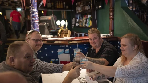 Kristine åbner døren for de forventningsfulde gæster, der strømmer begejstrede ind på baren til tonerne af et Gasolin-nummer. Nogle hilser på gamle venner, andre på nye.