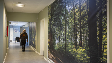 – Endelig kan man i forhold til de adfærdsstyrende rammer gøre rigtig meget med farver og indretning. Fx ved vi, at man har tendens til at åbne lyse døre oftere end mørke, så man kan med fordel have mørke døre ind til et personalerum og lyse døre til de fælles områder. Man kan også arbejde med tæpper, så beboerne ikke kan høre, når der går nogen forbi deres dør – eller bruge naturens farver eller lyde til at skabe en følelse af ro og fred.