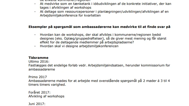 Som et led i den konkrete omsætning af indsatsområdet: Arbejdsmiljø, iværksættes et forløb, der
