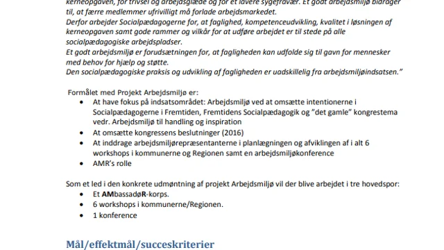 Projektbeskrivelse for Projekt Arbejdsmiljø