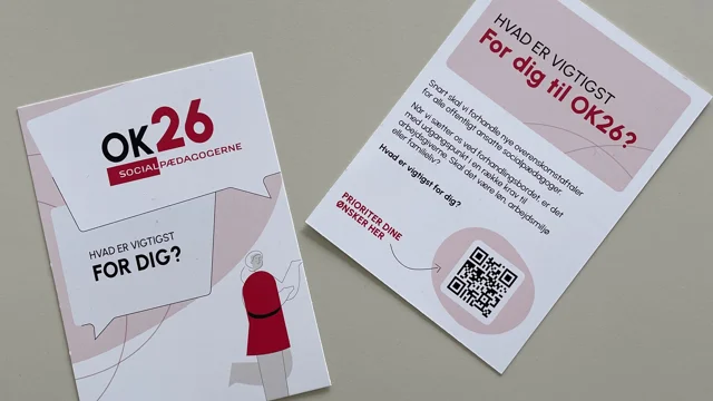 Socialpædagogerne byder indenfor til en række digitale møder i sensommeren, hvor medlemmerne har mulighed for at komme med input til overenskomstforhandlingerne på det offentlige område i 2026. Også i år kan man indsende postkort med forslag til OK-krav.