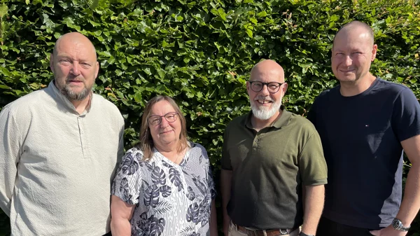 Kredsnæstformand Jørgen Christiansen og kredsformand Lisbeth Schou fra Socialpædagogerne Storstrøm glæder sig sammen med kredsformand Karsten Stegmann og kredsnæstformand Rasmus Damgaard over, at det tætte samarbejde med Absalon, FOA og STAR, så merituddannelsen er blevet til virkelighed.