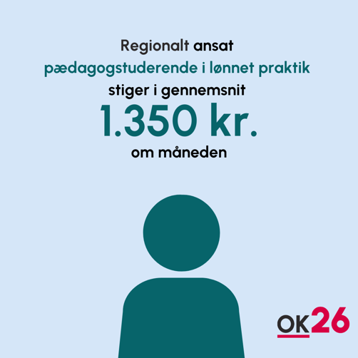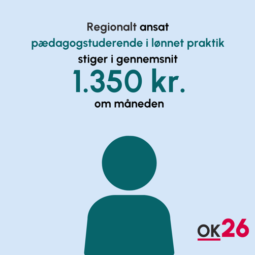 Samlet stiger lønnen for pædagogstuderende i OK26-perioden med 1.350 kroner om måneden.