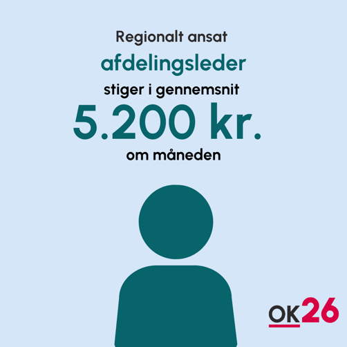 Der er aftalt generelle lønstigninger til alle regionalt ansatte på 6,27 pct. over tre år. Den første lønstigning gælder fra 1. april 2026, hvor lønnen stiger 2,4 pct.