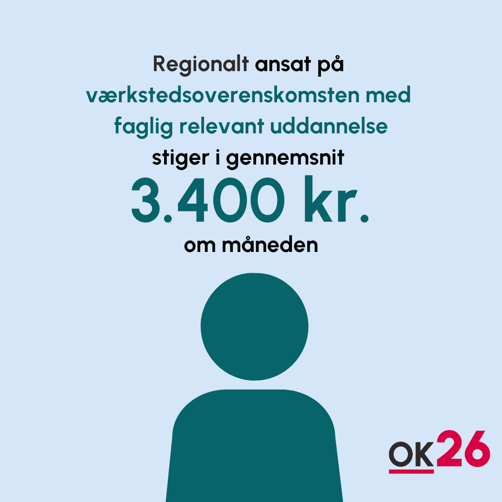 Der er aftalt generelle lønstigninger til alle regionalt ansatte på 6,27 pct. over tre år. Den første lønstigning gælder fra 1. april 2026, hvor lønnen stiger 2,4 pct. Det gælder også for dig som pædagogstuderende i praktik.