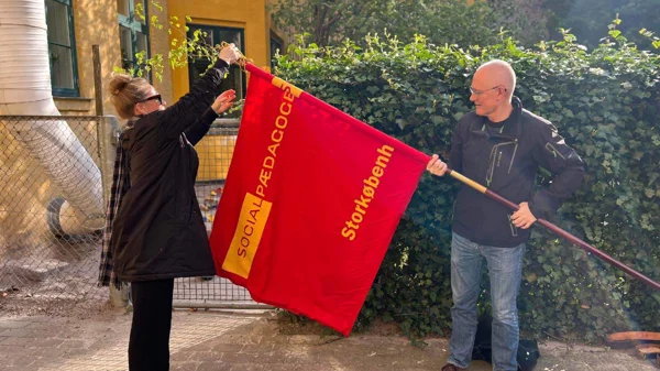 Kl. 12.15 Vi går sammen til Fælledparken med faner.