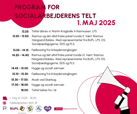 Arbejdernes Internationale Kampdag starter traditionen tro i LFS. Programmet fortsætter i Fælledparken med masser af sang, debat og fællesskab i Socialarbejdernes Telt.
