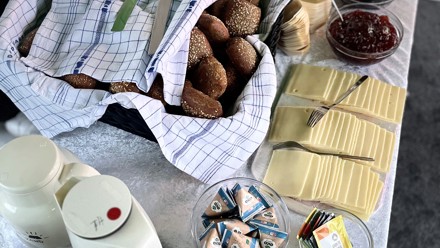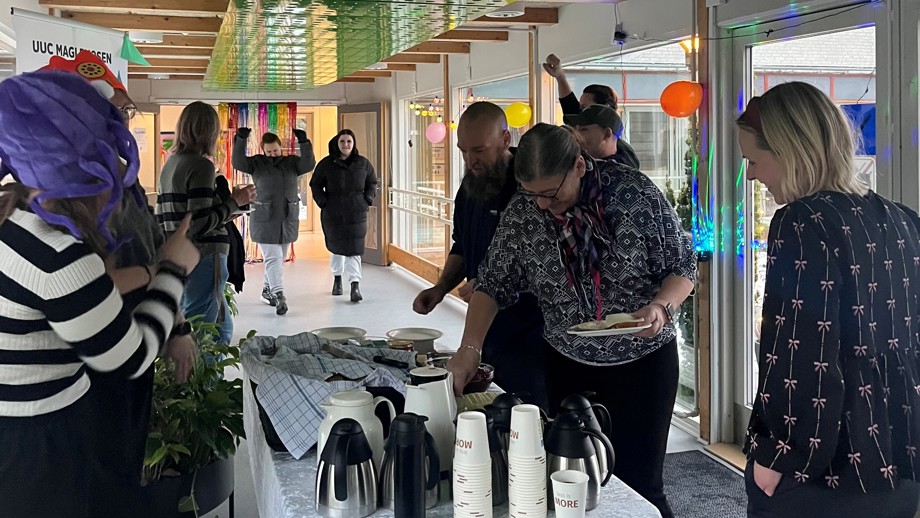 To yngre tillidsvalgte, den ene Socialpædagogernes AMR Nadja Vejling Rau von Essen, stod bag initiativet for at understøtte fællesskab og det gode arbejdsmiljø. Det initiativ var ledelsen med på og betalte for kaffe, te, boller og pålæg som stod badet i diskolys ved indgangen.